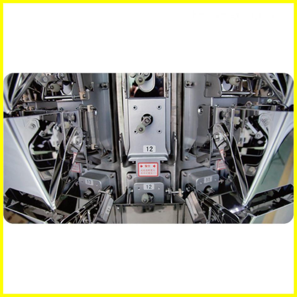 The standard no-spring combination scale features a patented spring-free hopper design, making it ideal for weighing a variety of products such as melon seeds, peanuts, nuts, almonds, grapes, candies, pistachios, potato chips, shrimp chips, and more. The double-support feeding tray is easily adjustable, while the feeding hopper is designed for easy disassembly, ensuring convenience and cleanliness. With a maximum weighing speed of up to 120 bags per minute, the 14-head standard no-spring combination scale is an economical, versatile, and cost-effective solution.