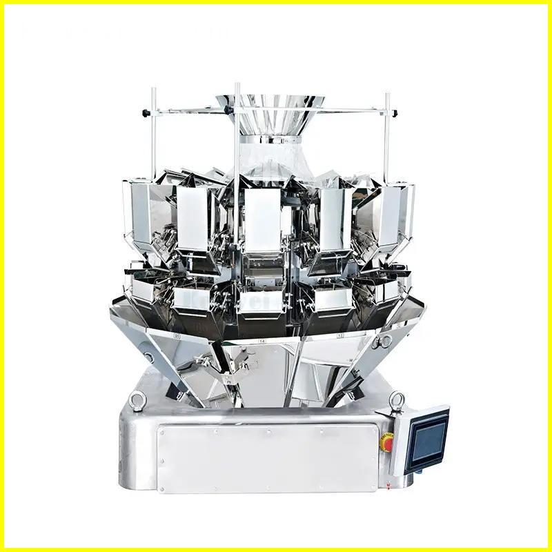 This fully automatic box-type weighing and packing machine is designed for high-precision, high-efficiency packaging of snack foods, puffed products, and granular materials. The system integrates an automatic box dropper, inclined conveyor, multihead weigher, filling and labeling units, ensuring seamless feeding, weighing, filling, printing, and labeling. Ideal for candy, nuts, seeds, jelly, and more. Customizable to meet diverse production needs.