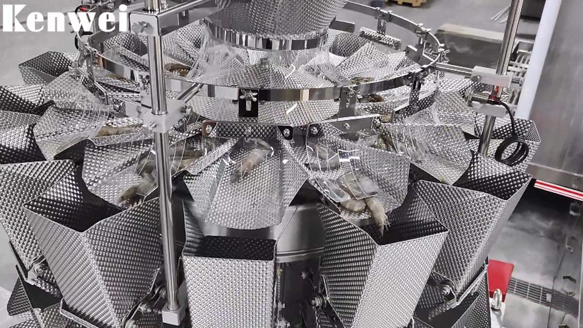 Automated Fresh Shrimp Packaging with 14-Head Multihead Weigher